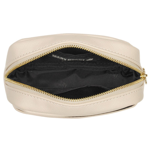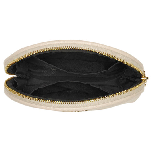 Simple embossed daisy round pouch, Beige, H10 x W15 x D5cm