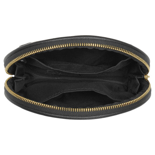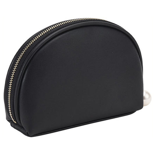 Simple embossed daisy round pouch, Black, H10 x W15 x D5cm